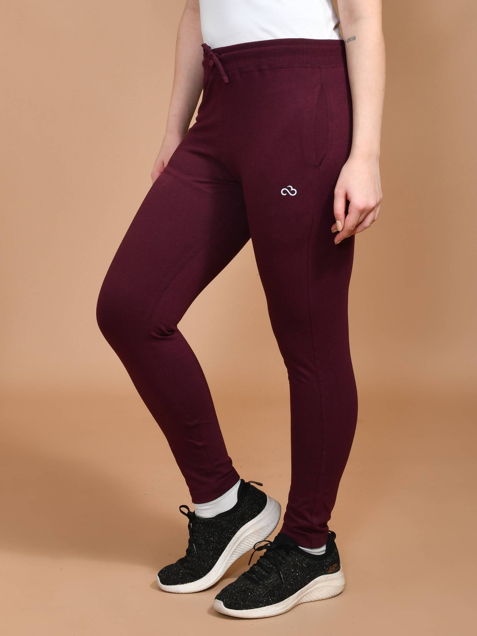 Women Solid Maroon Track Pants