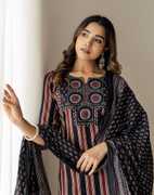 Skylee is well known brand of amazing range of women's ethnic wear in soft and solid colors that looks perfect for any occassion.With beautiful designs and patterns our apparels are very stylish and comfortable too.Get rid of the 'regular' look this season wearing this trending ethnic set by Skylee.This Calf Length Black, Brown, Beige colored Printed, Printed Lace ethnic set will comes with 3/4 Sleeve and V Neck Cotton kurta , Black, Multi Cotton bottom and Black, Multi color Printed Cotton dupatta.Kurta Fabric : Cotton , Bottom Fabric : Cotton , Dupatta Fabric : Cotton :: Kurta Work : Printed, Printed Lace , Bottom Work : Printed (With Pocket) , Dupatta Work : Printed :: Kurta Color : Black, Brown, Beige , Bottom Color : Black, Multi , Duptta Color : Black, Multi :: Bottom Waist Type : Half Elastic :: 1 Kurta::1 Salwar::1 Dupatta Set