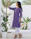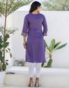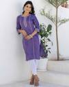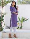 Skylee is well known brand of amazing range of women's ethnic wear in soft and solid colors that looks perfect for any occassion.With beautiful designs and patterns our apparels are very stylish and comfortable too.Get rid of the 'regular' look this season wearing this trending kurta by Skylee.This Straight Calf Length Dusty Purple colored Embroidery kurta comes with 3/4 Sleeve and V Neck.Kurta Fabric : Chinnon , Kurta Work : Embroidery , Kurta Color : Dusty Purple
