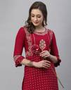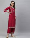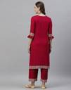 Red Straight Pigment Print Rayon Printed Kurta With Regular Sleeves & Round Neck, Rayon Pigment Print Red Color Palazoo