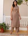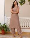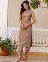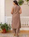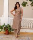 Skylee is well known brand of amazing range of women's ethnic wear in soft and solid colors that looks perfect for any occassion.With beautiful designs and patterns our apparels are very stylish and comfortable too.Get rid of the 'regular' look this season wearing this trending ethnic set by Skylee.This Calf Length Dark Beige colored Dyed ethnic set will comes with Sleeveless and Boat Neck Cotton Slub kurta and Dark Beige Cotton Slub bottom. Kurta Fabric : Cotton Slub , Bottom Fabric : Cotton Slub , Kurta Work : Dyed , Bottom Work : Dyed (With Pocket) , Kurta Color : Dark Beige , Bottom Color : Dark Beige , Bottom Waist Type : Half Elastic , Type : 1 Kurta,1 Pant