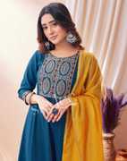 Skylee is well known brand of amazing range of women's ethnic wear in soft and solid colors that looks perfect for any occassion.With beautiful designs and patterns our apparels are very stylish and comfortable too.Get rid of the 'regular' look this season wearing this trending ethnic set by Skylee.This Calf Length Blue colored Embroidery And Sequins Work, Lace ethnic set will comes with 3/4 Sleeve and V Neck Silk Blend kurta , Blue Cotton Blend bottom and Blue color Embroidery Lace, Printed Silk Blend dupatta.Kurta Fabric : Silk Blend , Bottom Fabric : Cotton Blend , Dupatta Fabric : Silk Blend , Kurta Work : Embroidery And Sequins Work, Lace , Bottom Work : Embroidery And Sequins Work (With Pocket) , Dupatta Work : Embroidery Lace, Printed , Kurta Color : Blue , Bottom Color : Blue , Duptta Color : Blue , Bottom Waist Type : Half Elastic , Tye : 1 Anarkali Kurta,1 Pant,1 Dupatta