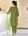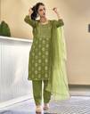 Samah is well known brand of amazing range of women's ethnic wear in soft and solid colors that looks perfect for any occassion.With beautiful designs and patterns our apparels are very stylish and comfortable too.Get rid of the 'regular' look this season wearing this trending ethnic set by Samah.This Calf Length Green colored Foil Printed, Sequence Embroidery Work ethnic set will comes with 3/4 Sleeve and Round Neck Magic Slub(Cotton Blend) kurta , Green Magic Slub(Cotton Blend) bottom and Green color Dyed, Gota Lace Net dupatta.Kurta Fabric : Magic Slub(Cotton Blend) , Bottom Fabric : Magic Slub(Cotton Blend) , Dupatta Fabric : Net :: Kurta Work : Foil Printed, Sequence Embroidery Work , Bottom Work : Dyed, Lace , Dupatta Work : Dyed, Gota Lace :: Kurta Color : Green , Bottom Color : Green , Duptta Color : Green :: Bottom Waist Type : Half Elastic :: Tye : 1 Kurta::1 Pant::1 Dupatta