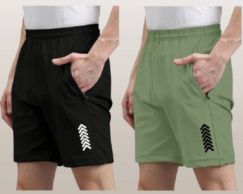 skyrow Solid Men Black, Light Green Regular Shorts