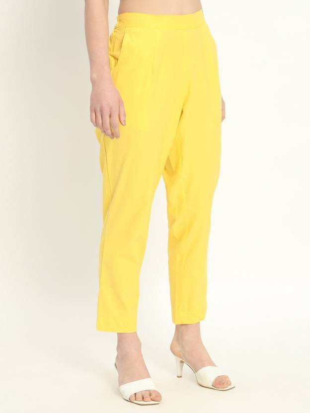 skytick Women Tapered Yellow Pure Cotton Trousers