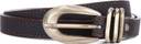 The belt comes with a metallic pin and buckle closure that ensures an adjustable and comfortable fit. It's a free size belt and comes with metallic loops that keep the belt tongue secure.