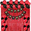 Red Black Birthday party decoration kit. Include 1pcs black HBD Bunting, 1 pcs Red foil curtain, 35 pcs Black and Red balloon. You can use our different balloon accessories like balloon stand, ballon glue dot, ballon curling ribbons, balloons streamers, printed balloons, balloon pump manual and electric to inflate baloons.These will surely make your decoration stand out. This set can be used for different theme like birthday 1st/first, quarantine bday celebration, 2nd birthday, 3rd birthday, 4th bithday, 6th birthdays 7th birthday, 8th birthday, 30th bday, 40th bday.
