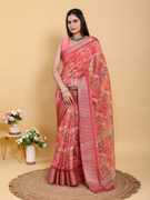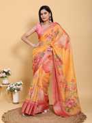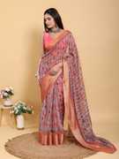 Floral Print, Printed Bollywood Cotton Linen Saree (Multicolor, Pink)