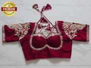 Step into elegance with this premium Zari Embroidery Silk Blouse, exquisitely crafted for a regal ethnic look. Made from high-quality silk fabric, this ready-to-wear blouse features rich zari embroidery on the bust, sleeves, and tie-back tassels, offering a grand and festive appeal. The structured cups and sweetheart neckline enhance the silhouette, while the detailed floral and paisley motifs give it a luxurious traditional touch. Designed for weddings, festivals, and special occasions, this blouse is ideal for pairing with sarees, lehengas, or ethnic skirts. With its comfortable fit and ornate detailing, it's the perfect addition to any celebration wardrobe.
