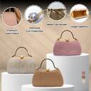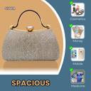 Make a dazzling entrance with this exquisite round evening clutch purse, featuring a unique textured finish that catches the light from every angle. The elegant handbag is designed with a glamorous rhinestone-studded handle, perfect for adding a touch of sparkle to any formal or evening ensemble. The secure clasp keeps your essentials safe, while the compact yet spacious interior is ideal for carrying makeup, keys, or small accessories. This fashionable clutch is a must-have for special occasions, parties, or any formal event where you want to add a touch of sophistication and style to your outfit.