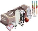 X-Tech Arm Guard, 1 Pair Academy Batting Gloves, V360 Kashmir Willow Size 5 Bat, 1 Pair Academy Batting Pads, 1 Classic Abdominal Guard, 1 Crown Leather Ball, Slazenger V-55 Kit Bag, Thigh Pad