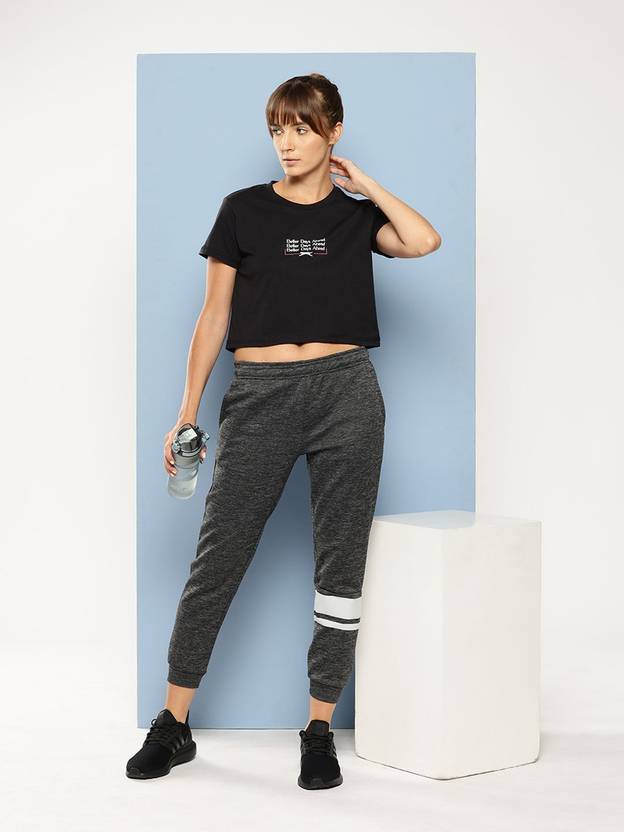 SLAZENGER Printed Women Round Neck Black T-Shirt