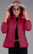 Equipped with long sleeves, this jacket can provide extra coverage, shielding you from the chilly winds, while the hooded neck with fur detail can add a luxurious touch. And, the fur detail can not only enhance this jacket's aesthetic appeal but also serve as a functional element by providing additional warmth. Moreover, thanks to its zippered and button closure, this jacket can ensure a secure fit while protecting you from the elements. Additionally, with up to two pockets, it can allow you to keep your essentials close at hand, whether you are heading out for a casual stroll or an adventurous winter excursion.