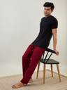 Dark Maroon Solid Cotton pyjama, has an Elasticated waistband with drawstring closure, 2 pockets.