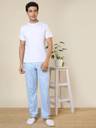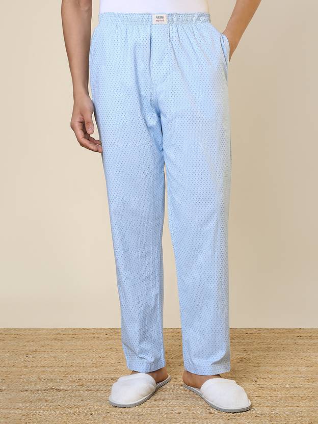 Medium Blue Printed Pure Cotton pyjama, has an Elasticated waistband with drawstring closure, pockets.