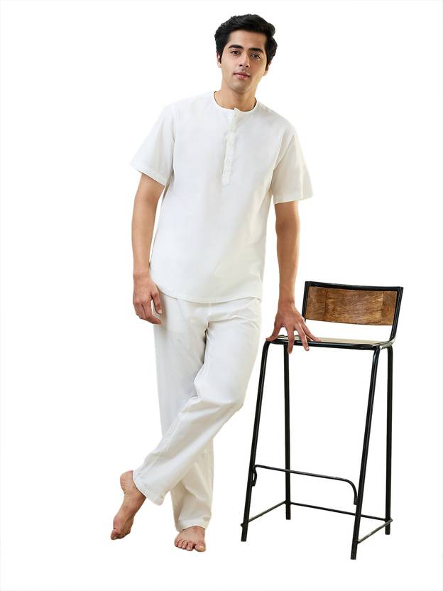SLEEPZ BY RAYMOND Men Solid White Top & Pyjama Set