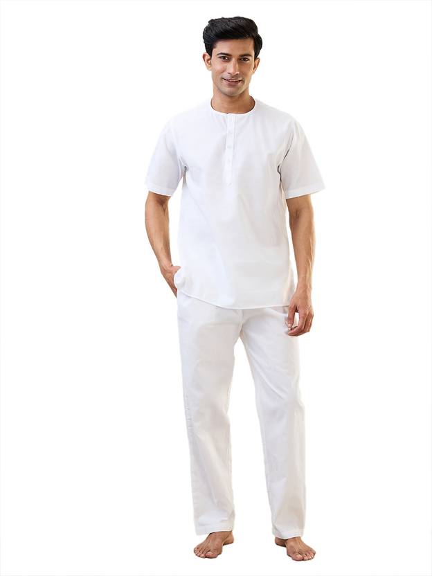 SLEEPZ BY RAYMOND Men Solid White Top & Pyjama Set