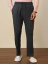 Dark Grey Solid Cotton Blend Regular Fit track pants, has an Elasticated waistband with drawstring closure and pockets.
