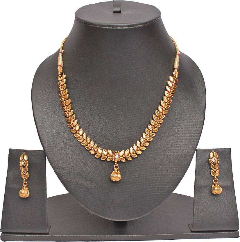 24 Carat Gold Plated Jewellery On Brass. Each Piece Is Unique In It'S Design. Hand Crafted To Perfection. Comes With Matching Ear Piece. Ideal Pieces To Be Worn For Weddings And Other Functions.Mix And Match With A Designer Bangle And Your Whole Look Is Complete. Kindly Keep Away From Sweat And Perfumes. Can Be Re Polished If Required,