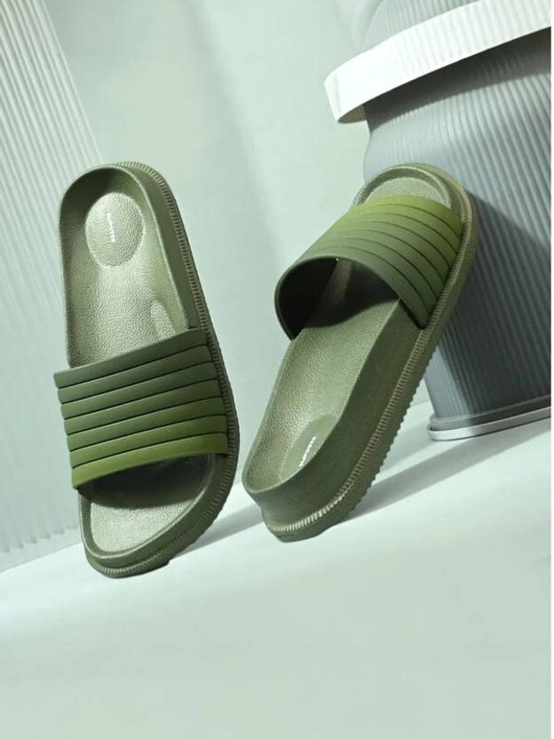 slipover Men Soft Trending Comfortable Chappal Lightweight Casual Slippers for Daily Wear Slides (Olive , 10)