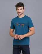 SLOWLORIS Printed Men Round Neck Dark Green T-Shirt
