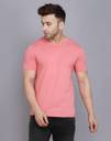 SLOWLORIS Men Solid Round Neck Cotton Blend Pink T-Shirt