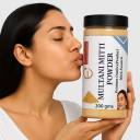 Multani mitti powder is known for its ability to improve the skin’s texture and appearance. It acts as an exfoliating agent, helping to remove dead skin cells and refresh the surface of the skin. Regular use may help in reducing blemishes and pigmentation, making the skin look more even-toned. It also helps in regulating oil production, which is beneficial for those with oily skin. By gently cleansing the skin, it can help maintain a clear and fresh complexion without the need for harsh chemicals.