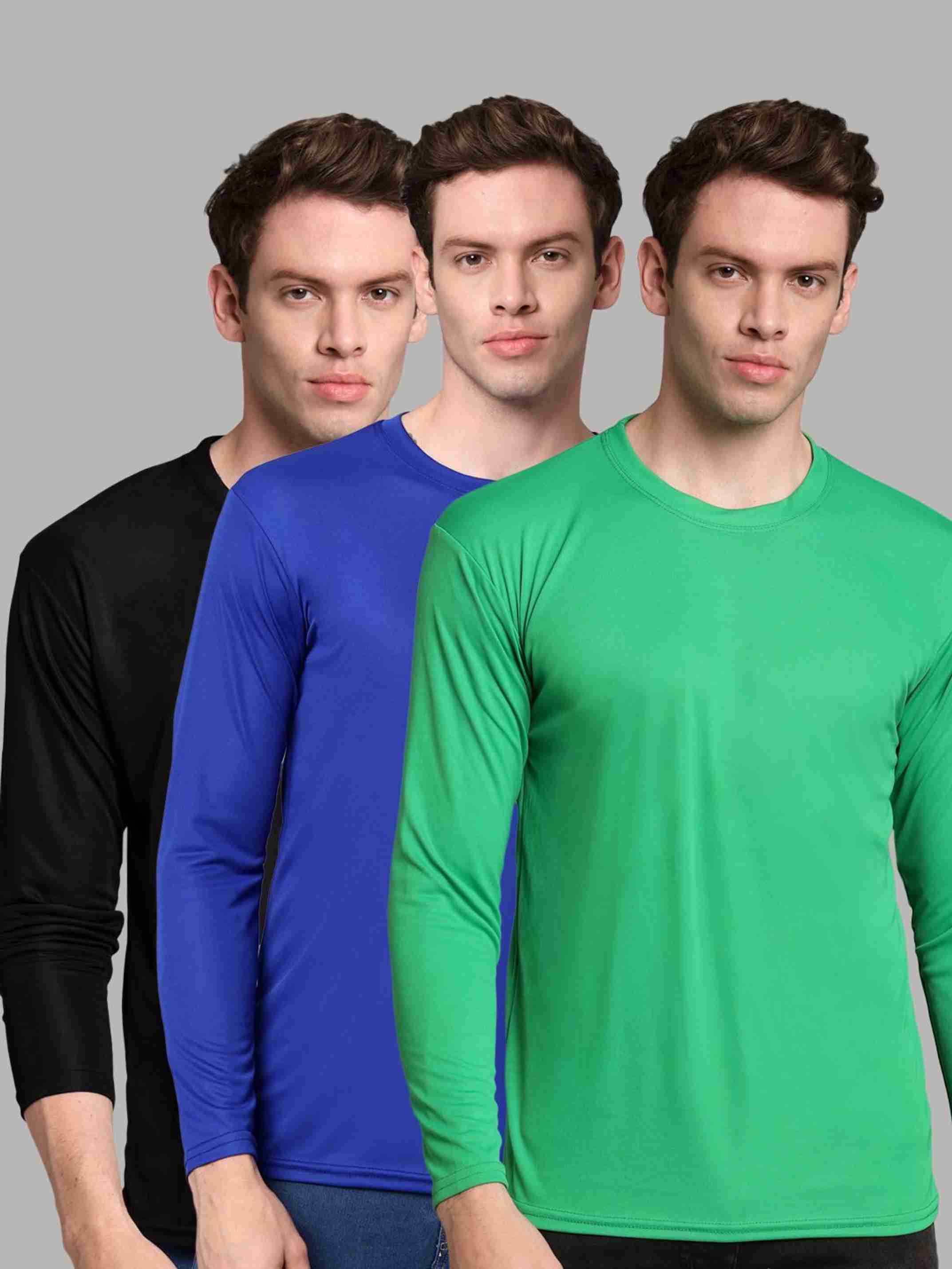 Pack of 3 Men Solid Round Neck Polyester Green, Blue, Black T-Shirt