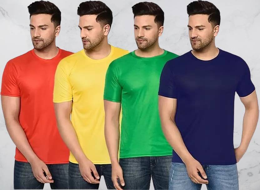 SM SHAYAM CREATION Pack of 4 Men Solid Round Neck Polyester Multicolor T-Shirt