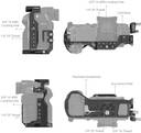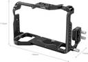 SmallRig Cage & Cable Clamp for FUJIFILM GFX100S/GFX50S II 3715 is designed to protect camera, provide various accessory mounting points, and ensure stable signal transmission. Securing camera via one 1/4"-20 screw at the bottom and the right shoulder strap hole to prevent deflection. The cage maintains access to buttons, card slots, ports, battery door, and tilt-type screen. It features 1/4"-20 holes, ARRI 3/8" -16 locating holes, NATO rail to mount Top Handle 2165, Side Handle 2093, HSS2426, 2187, as well as Monitor Mount 2903 and 2904; comes with a cold shoe on the top to attach microphone, LED light, flash trigger, etc. The Arca-Swiss quick release plate fits tripod 3257 for quick switch between tripod and handheld shooting; 1/4"-20 threaded hole at the bottom allows for mounting DJI RS 2 / RSC 2 / RS 3 / RS 3 Pro Quick Release Plate (Upper) with two 1/4” screws. An accessible spanner is included for screw assembly or disassembly. In addition, the cage comes with an HDMI & Type-C cable clamp, fixed by a knob screw, to prevent signal disconnection.
