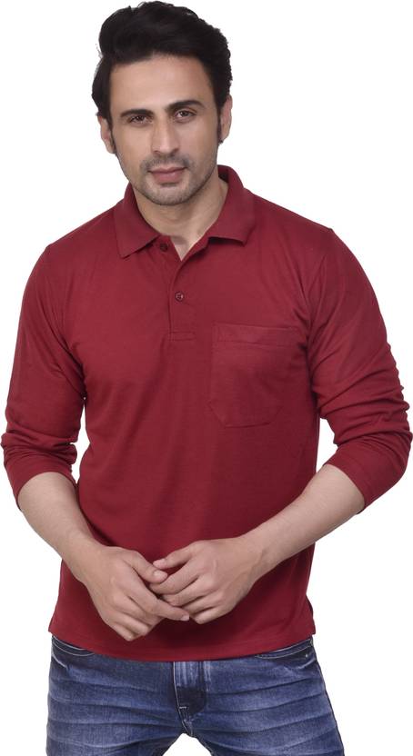 SMAN Solid Men Polo Neck Maroon T-Shirt