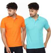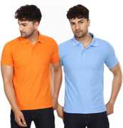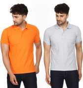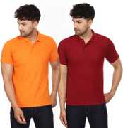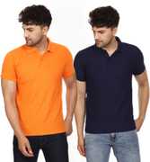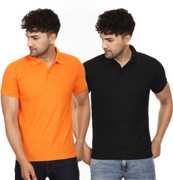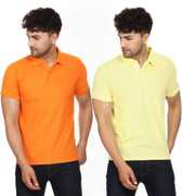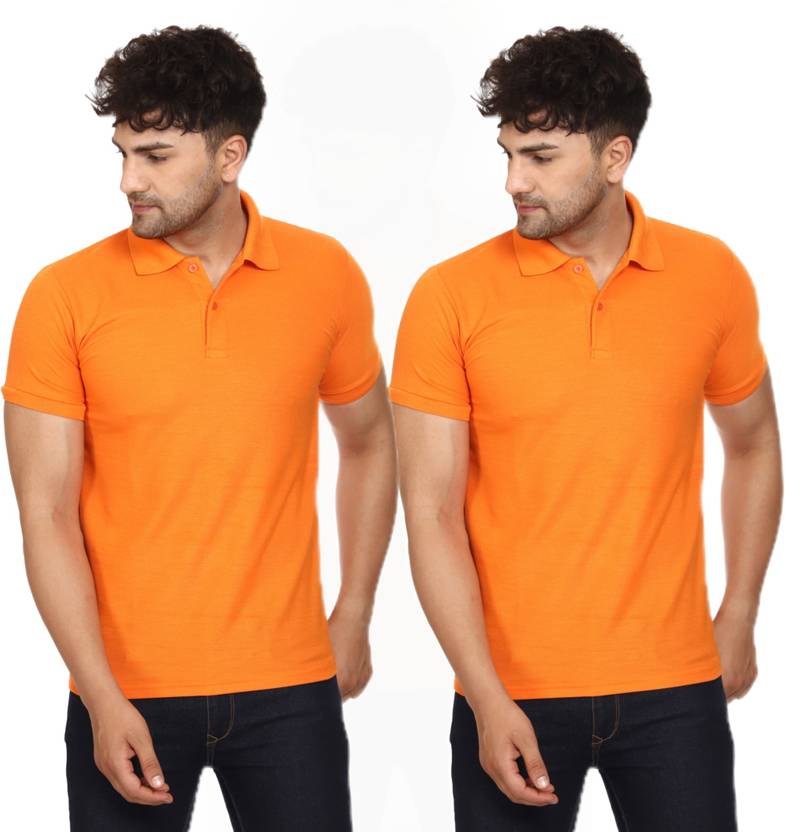 SMAN Solid Men Polo Neck Orange T-Shirt