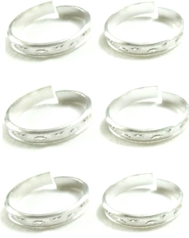Silver Plated Pack of 6 Toe rings Bichiya Metal Toe Ring Set