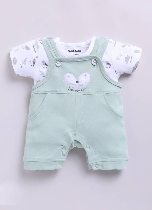 Smart Baby Dungaree For Baby Boys & Baby Girls Casual Striped Pure Cotton (Green, Pack of 1)