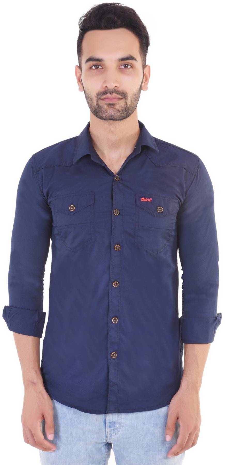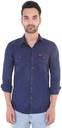 Smart Men's stylish Indigo color Cotton slim fit shirt is perfect for the casual outing. Featured with Camouflage Trims for styling .The cotton fabric keeps you comfortable throughout the day.
