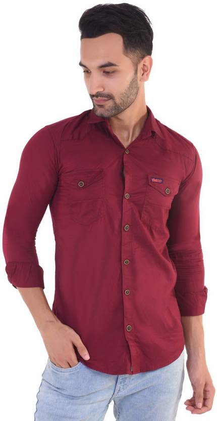 Men Regular Fit Solid Slim Collar Casual Shirt