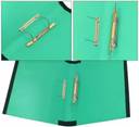 100% recycleable fileboard spring file fitted with sturdy steel spring clip, with rounded corners, with 3-crease folding adjustment and holds 100-150 papers depending on paper thickness. product will be shipped in multi-colors as displayed.