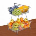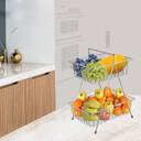 SMART SLIDE Premium 2 Tier Fruit Basket, Fruit Vegetable Bowl for Kitchen Countertop Stainless Steel Fruit & Vegetable Basket (Silver)
