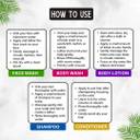 This all-in-one Shampoo, Body Wash, Body Lotion, and Conditioner is the ultimate grooming solution for complete head-to-toe care. The shampoo cleanses and revitalizes hair, while the conditioner deeply nourishes and strengthens, leaving hair soft, shiny, and manageable. The body wash gently cleanses the skin, removing dirt and impurities, while the body lotion hydrates and soothes, providing long-lasting moisture for smooth, soft skin. Infused with natural ingredients, this multi-functional product simplifies your routine without compromising on quality. It's perfect for busy lifestyles or travel, offering a comprehensive, convenient solution for hair and skincare in one bottle. Suitable for all hair and skin types, it leaves you feeling refreshed, revitalized, and well-groomed.