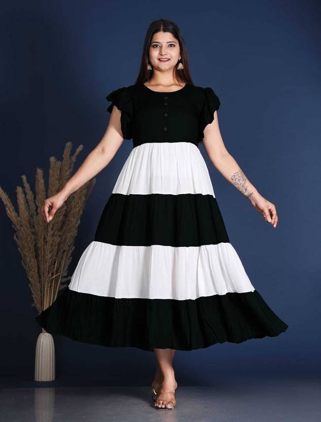 Viscose Rayon Stitched Flared/A-line Gown (Black)