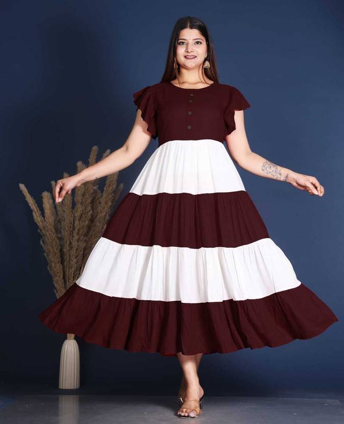 Smartgod Viscose Rayon Stitched Flared/A-line Gown (Brown)
