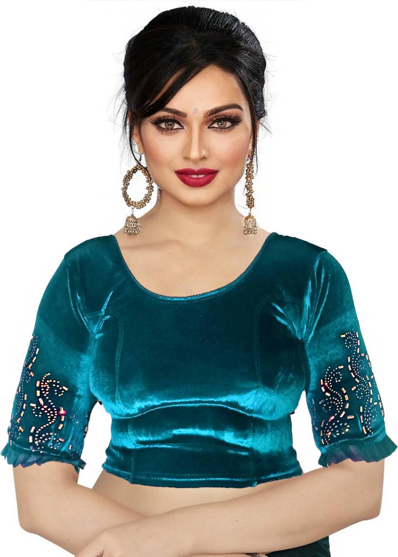 Discover elegance and comfort with our stretchable readymade velvet blouse, designed to add a touch of glamour to any outfit. Perfect for parties and functions, this blouse features stylish frill ruffles on the sleeves and exquisite Swarovski work on the back and sleeves, ensuring you stand out in any crowd. Made from breathable, skin-friendly fabric, this blouse offers both style and comfort, making it an essential addition to your wardrobe. Available in a range of vibrant colors, our ready-to-wear readymade stitched blouse is the perfect choice for fashion-forward women.