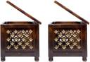Smarts collection Beautiful Antique Wooden Stool with Brass Cutting Design Storage Stool for Living Room and Bedroom Furniture (Brown,12 X 12 X 12 Inches)(Set of 2) Solid Wood Side Table (Finish Color - BROWN, Pre-assembled)