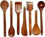 Smarts collection Wooden Cooking Spoon Set of 7 | 2 Frying, 1 Serving, 1 Spatula, 1 Chapati Spoon, 1 Desert, 1 Rice | Rosewood Utensils | Brown Disposable Wooden Table Spoon (Pack of 1) Kitchen Tool Set (Brown, Cooking Spoon)
