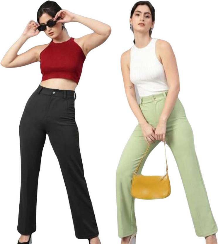 Smartvision Pack of 2 Women Slim Fit Multicolor Cotton Blend Trousers