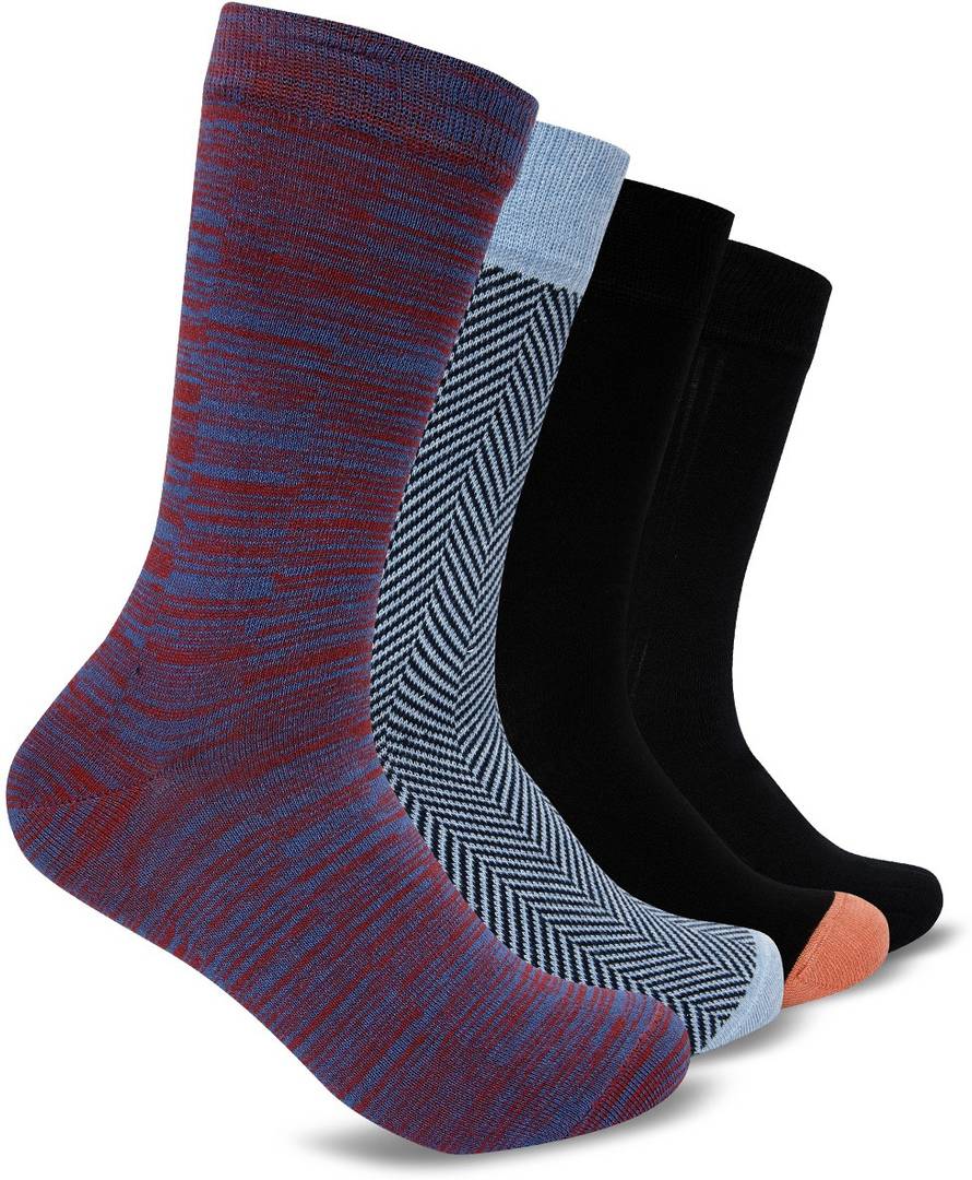 Give your feet feel of comfort & softness. This combo of 4 consist 2 solid color & 2 stripes printed calf length socks, made from fine cotton & it has strectable lycra property for comfartable wear.