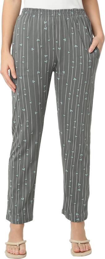Make your night comfortable in cotton lycra hosiery fabric. This ash grey heart print pajama pockets and stretchable fabric will keep you at ease.