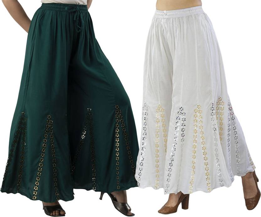 Wear this awesome palazzo with Mirror Work palazzo on the hemline, looks trendy & chic to wear on any occasion by Meyara Wear it to casual outings, as fusion wear to any occasion like casual outing or party or wedding. Look stylish & be comfortable at the same time with these palazzo pants by Meyara which you can wear to the office as well as at parties or weddings as the print is trendy & quality is premium. Pair with Kurtis, Tops, the options are endless. Due to limitations in photography and the inevitable differences in monitor settings, the colors shown in the photography may not correspond 100% to those in the items themselves. These palazzo pants are versatile and can be worn on various occasions, including casual outings, parties, and weddings. They are designed to provide both style and comfort, making them suitable for office wear as well. The print of the palazzo is described as trendy. Why choose us? We have created a great reputation in the market by providing a wide range of the highest quality fashion products. For us, customer satisfaction is a priority. Thus, we are dedicated to offering the best quality and durable products that you can find worth it.