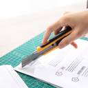 Stainless Steel for paper, sheet cardboard cutting. Make Perfect Paper art with this paper-knife. Perfect grip for holding long term. Cutter ideal for thicker cuts. It can also be used for commercial or industrial purpose like cutting thick paper, cardboard, photos , coupons, card stocks, mat board, foam board, delicate fabrics, etc Specification: Hard SK5 steel blade for easy cutting, Use snap-off cover in the back to break the worn blade, Pen clip design, Automatic lock system for safe use.