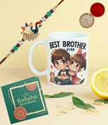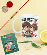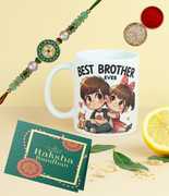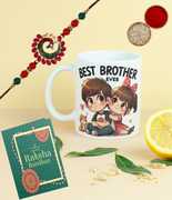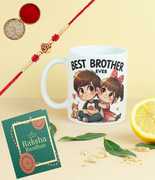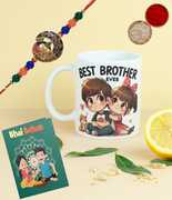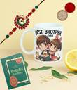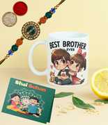 Designer Rakhi, World's Best Brother Cofee Mug, Greeting Card, Chawal Roli Pack